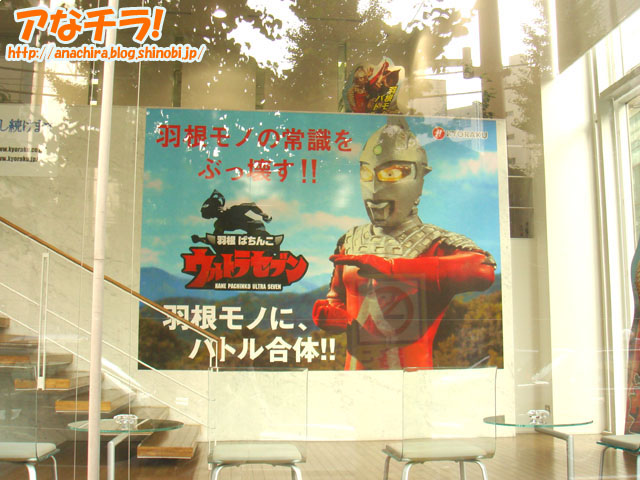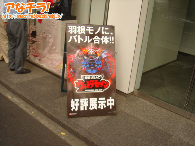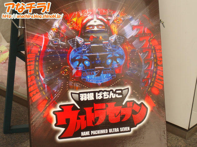 パチンコ台「羽根パチンコ ウルトラセブン」の展示してあるというPOP。パチンコメーカー「KYORAKU」の店頭/ショールームで確認。知ってました?KYOURAKUって秋葉原に東京支社あるんですよ。 特撮テレビ「ウルトラセブン」は、1967年に放映された作品で、ストーリーは宇宙人ウルトラセブンが地球人「諸星ダン」の姿になって地球警備隊「ウルトラ警備隊」に入隊、宇宙人や怪獣などから地球を守るというもの。主なスタッフは監督:円谷一や実相寺昭雄、満田かずほ、脚本:金城哲夫など。ハードなSF作品で今なおファンが多い。 今回のパチンコ台「羽根パチンコ ウルトラセブン」は、ウルトラセブンがモチーフされた羽根ものと呼ばれる種類のパチンコ台のこと。羽根もの台は出玉はパチンコ台の中では少ない方だが、当たりが出る確率やアクション性が高く、初心者向きとされている。SFファンや特撮ファンに多いウルトラセブンファンをパチンコ屋に誘導したいという目論見なのだろう。 ウルトラセブンを題材にしたパチンコ台は以前に「CRぱちんこウルトラセブン 」が登場している。 ちなみに筆者は大学生時代にパチンコにはまったことがあり、バイトの給料1ヶ月分を半日ですった経験がある。あの当時は攻略本とか買ったんだけど効果なかったな~(苦笑) 享楽産業 (k)