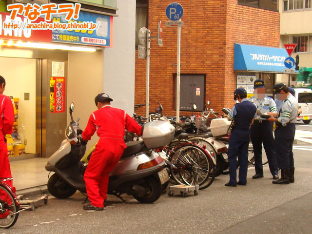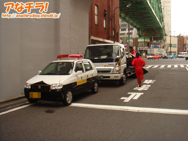 駐車違反のバイクを撤去している風景。警官と民間会社の「駐車監視員」、レッカー業者が強制撤去していた。写真は9月22日(金)に石丸電機6号店前での作業風景。 見ていると警察と民間監視員が確認して、レッカー業者がバイクをレッカーしていき、次々とバイクが姿を消していっていた。 バイクで買い物に来た人が「ここなら警察に見つからないだろう」と駐車した裏路地を、警察が「ここにはバイクが違法駐車されているよね」と検挙しているように見える。 この地域は「人も車もスイスイアキバ」というコーンが設置されている、設置しているのは「秋葉原 物流効率化 実行委員会」。 (k) PR