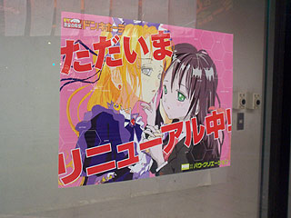 ドン・キホーテ1Fにあったメロンパン屋がいつのまにか撤退。そして、その店舗部分に貼られていたのが、どこか同人誌っぽいイラスト付きの「ただいまリニューアル中!」と書いた張り紙。金髪メイド(ゴスロリ?)と学生服姿の美少女二人が半開きの目で手をつなぎながら、何かをこちらに訴えているかのよう。 そもそもドン・キホーテ秋葉原店は、秋葉原の特性に合わせて店内のPOPも萌え系のデザインを採用していたり、テナントとしてメイド喫茶を入れたり、コスプレコーナーも充実させるなど、なかなか秋葉原への理解度は高い。この張り紙のセンスも、それを表していると言えるかも。張り紙をだしているのは、ドン・キホーテ100%出資会社でテナント管理などをしているパウ・クリエーション。 次は萌え系イラストを焼き印したメロンパンを売るくらい、テナントの業態も秋葉原に合わせてくるといいかもね。 パウ・クリエーション (f) PR