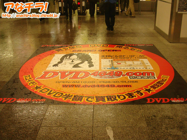 あのJR秋葉原駅の電気街口改札前の踏み絵広告を中古DVD屋が利用!10月6日(金)に確認。 今までもアニメやホビーショップの宣伝に使われていた人気の広告スポットに、中古DVD屋「DVD4649.com秋葉原店」が出稿していた。アニメとかじゃない踏み絵広告を初めて見たので正直驚いた・・・。 DVD4649.com秋葉原店 □関連記事 (k)
