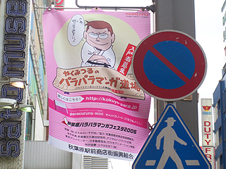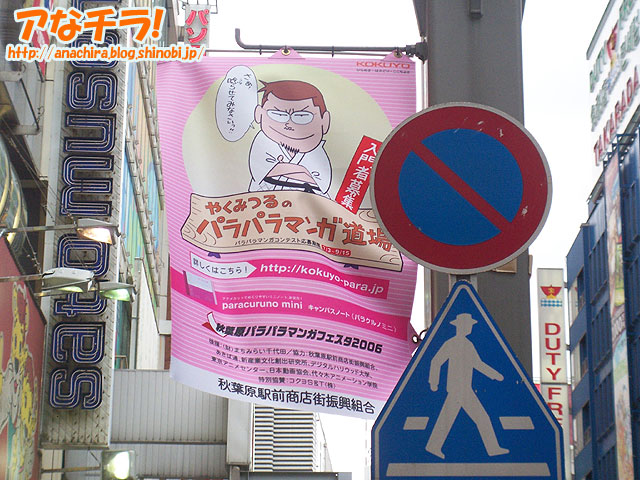 秋葉原では今、そこら中の街灯下に「入門者募集 やくみつるのパラパラマンガ道場」と書かれた垂れ幕がかかっております。パラパラマンガと秋葉原が何の関係があんのさ?って感じですが、このイベントの協力団体として、秋葉原駅前商店街新興組合、あきば通、東京アニメセンターといった秋葉原関係の組織が絡んでいいて、ほかに秋葉原では有名な政治家も…。 文房具のコクヨが特別協賛していて、コクヨのノートを使ってパラパラマンガを作って作品を競おうというイベント。審査されて賞を取ると、UDXビル内にある東京アニメセンターで展示されるなどの特典があるとか。 6月には、やくみつる、ほしのあきが登場して東京アニメセンターで記者発表会もあったとかで、その詳細が専用のWebにあがっております。しかし、これをみると、千代田区議会議員の小林たかや氏が例によって絡んでいるのがわかる…。やくみつる、ほしのあきらと並んで写真に本人が大きく登場しちゃって、いったいそれもどうなの…。このイベントで企業や団体が絡んで金かかってるのも、そのせいか。 今じゃそこそこ知名度ある秋葉原のフリーペーパーあきば通も小林たかや氏が中心になってやってるやつなんだけども、みんなは知ってるのかいな?ま、地域振興に頑張っているとも言えるが、ご本人は裏方に徹すればいいんでないかい?あんまりこういうイベントやメディアに顔出されると単なる売名行為とも見えてしまう。 そもそもこのイベント、パラパラマンガをノートに書いて応募すると、事務局がノートを実際にめくってビデオ撮影し、Webでストリーミング再生するという、なんともデジタルとアナログが複雑骨折して融合したような妙なプロセスが待っている(笑)。発表会以外は全てWebでやるイベントなんだから、普通にアニメーションGIFとかフラッシュでパラパラマンガやったらいいじゃん、と誰もが思うはず。ここにネット帯域の無駄使い極まる…か。だいたい、いまどきノートに手書きしてパラパラマンガ書く方がハードル高いっちゅうに。スポンサーがコクヨなんだからしょうがないだろって?ま、そりゃそうだ。 イベント名称に「2006」と年号がついているが、「2007」はあるのだろうか。 KOKUYO パラパラマンガ道場 (f)