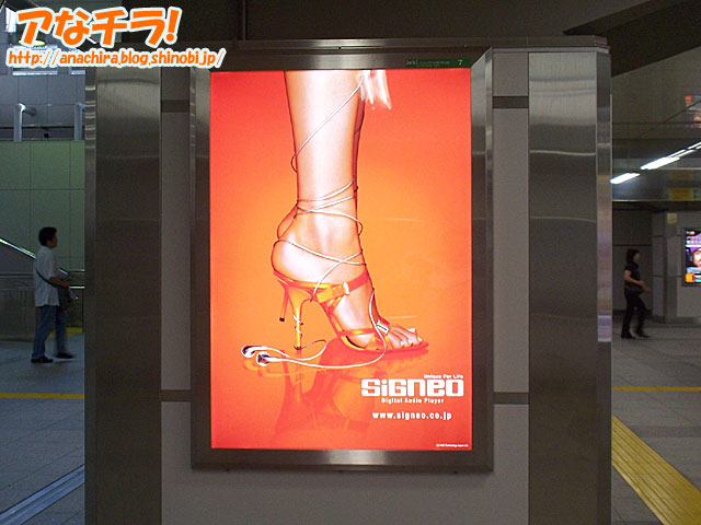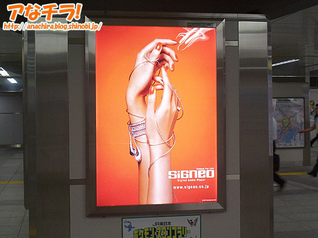 JR秋葉原駅の1Fには今、とてもハイセンスで美しく、官能的とも言える大人向けデザインの広告が出ている。微妙にグラデーションのかかった背景に女性の手と足、そしてそれに絡みついたイヤフォン…そんな写真に社名だけが入った広告。その色彩感覚と素材の組み合わせは絶妙で、どこか官能的で美しい。銀座の宝石店が出した広告ではないかと思うクオリティだ。 しかし、そのセンスは秋葉原で果たして有効なのだろうか…。 秋葉原といえば、今じゃ幼児ポルノ天国一歩手前の状況だ。下着や肌を見せる幼女、やたらと巨乳な少女のイラストであふれている。その対象は年々低年齢化していて、ベクトルとしては明らかに幼児ポルノへと向かっている。 そんな状況で果敢にも大人向けのデザインで勝負するのは、挑戦なのか?それともマーケティングのミスなのか。広告主は、SIGNEOというMP3プレイヤーなどデジタルオーディオ機器を開発・販売している香港系メーカー。iPodを見ればわかるように、この手の製品にはブランド価値がモノを言うわけで、彼らもそれを狙っての広告戦略なのだろう。 しかし、秋葉原にいる人種に限っていえば、“官能的”と感じるセンスのベクトルは“子供っぽさ”にあり、“大人っぽさ”にはない。こんなにもハイセンスで美しい広告なのに、おそらくSIGNEOというマイナーなブランドはここ秋葉原では浸透しないだろう。広告のある場所も、通路にひっそりとあるだけで、改札口の床面を全面に使った同人誌ショップの広告とは対照的。すでに力と勢いの差が現れている。 個人的には、少なくとも過去10年で秋葉原に出た広告の中ではトップクラスの美しい広告だとおもうのだが…。惜しい、あまりに惜しい。ま、だいたいにしてSIGNEOの製品デザインがイマイチ安っぽいわけで、そこからまずなんとかしろよって…まぁそれがオチなんですけどね(笑)。 SIGNEO (f) PR