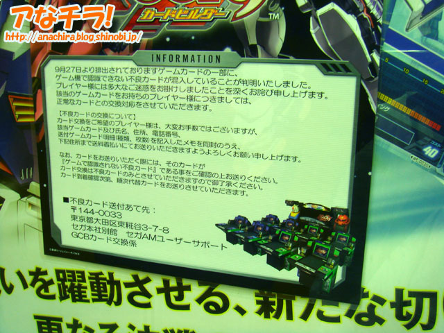 「不良カード」が発見されたというゲーム「機動戦士ガンダム 0079 カードビルダー Ver.2.01」のお知らせ。 ゲームプレイ後に排出されるゲームカードの一部に、ゲームで認識されない不良カードが混入しているとのこと。セガでは、不良カードを担当部署に郵送すれば、正常なカードと交換するとしている。 先日このゲームのバージョンアップを「パソコンのOSと一緒」と紹介したが、まさかバグもちまで一緒だったとは(笑) 「機動戦士ガンダム0079カードビルダー」のページ PR