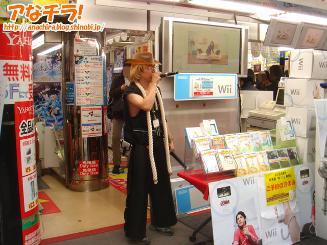 「Wii」発売開始記念で元祖「ウィー」昭和の名プロレスラー「スタンハンセン」が登場。秋葉原を席捲するかのような勢いで暴れていた(笑)。名札にはプロレス実況の古舘伊知郎に名付けられた代名詞「不沈艦」も書かれていたのが心憎い。