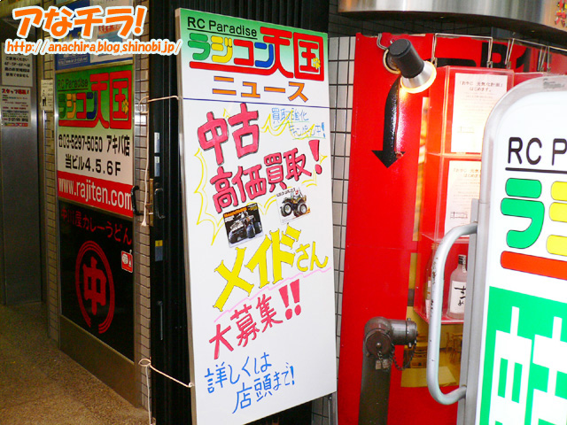 新品から中古まで扱うラジコンの専門店「ラジコン天国」が大看板でメイドさんを募集中。 同店が何故募集しているのか店頭に行けば教えてくれるそうですが、聞きに行く度胸がありません。 ついに漢の玩具ラジコンにまでメイドの波が押し寄せてきたのか・・・。恐るべし萌え文化。 ラジコン天国 (k)