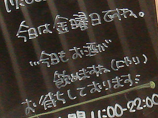 なんとなくメイドさんがお酒を飲んでいるのでは?と思ってしまった看板。10月13日(金)にメイド喫茶Cafe Mai:lishで確認。 真実は確かめてません。 メイド喫茶カフェメイリッシュ(Cafe Mai:lish) □関連記事 (k) PR