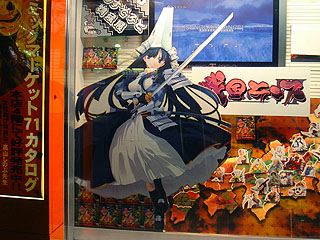 とらのあな秋葉原本店の正面ディスプレイが「戦国ランス」に変更。約2mもある上杉謙信の巨大POPが目を引いている。そのほかゲームプロモーション画像を流したり、ゲームに登場する武将が描かれたJapan地図も掲示されていた。