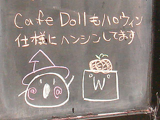 店内がハロウィン仕様になったことを告知する看板。カフェドール東京が10月1日(日)から開催。 ドアにはジャックオーランタン、店内にもモールなどが飾られていた。 メイドさんは通常のメイド服だった様子。 ところで、以前から看板に書かれている○と□のキャラクター、何か名前とかあるんでしょうかね?毎回良い味出しているので気になってます。 メイドカフェ カフェドール東京(Cafe Doll) □関連記事 (k)
