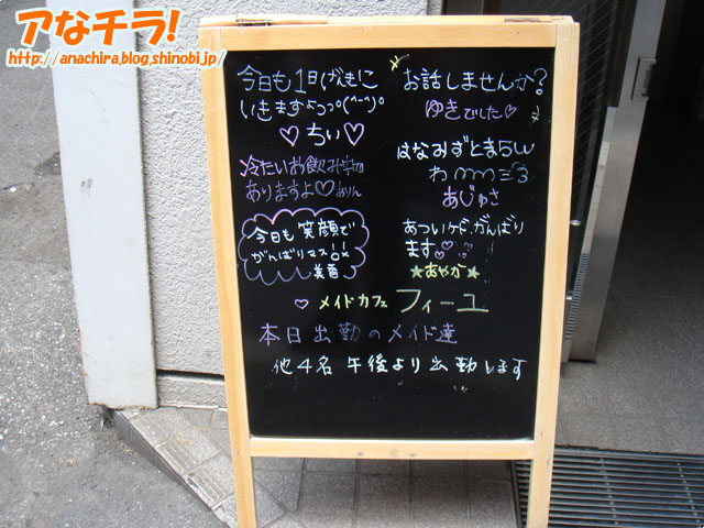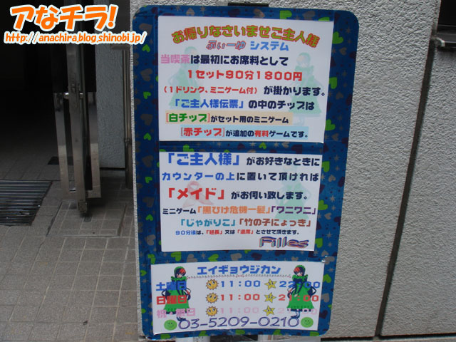 メイド喫茶に入る条件に自分のお気に入りのメイドさんが出勤しているかどうかを判断基準にしている人には嬉しいサービス。 フィーユは基本セットでドリンクに加えてメイドさんとのゲームが出来るようになっているので、お気に入りのメイドさんと対戦すればゲームの楽しみも増すことでしょう。 私的には「はなみずとまらんわ」のコメント自体に興味を持ってしまい、書いたのはどんなメイドさんなのだろうかと想像を巡らしてしまいました。 メイド喫茶「FILLES」 (k) PR