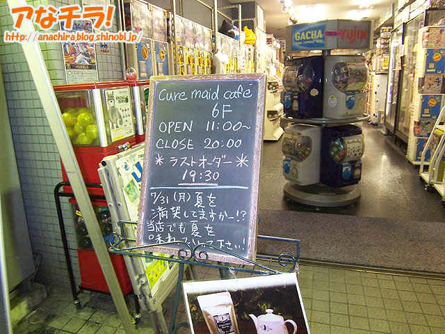 夏到来!というわけで、メイド喫茶も夏らしい演出を始める頃か。 メイド喫茶のCURE MAID CAFEが店先に出していた黒板には「夏を満喫してますかー!?当店でも夏を味わっていって下さい!」とのメッセージあり。メイド喫茶で夏を満喫してくれってどういうことじゃろか?と調べてみると、メニューに夏限定のマンゴーヨーグルトとかあったりして、どうやらこれを指しているらしい。 まさかメイドが水着に?とか期待する向きもありそうだが、考えてみれば、店によっては冬でもスクール水着になってたりしてますな(笑)。この店は全体的に落ち着いた雰囲気をウリにしているところなので、そもそもそんなことするはずはなさそう。 CURE MAID CAFE (f) PR