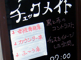 用意してある席の紹介をしている看板。掲示しているのは4月1日に開店したバトラーカフェ「チェックメイト」で、準備しているのは「女性専用席」「カウンター席」「ふつう席」の3つ。 同店のメインターゲットは女性なので、女性に安心して入店して貰えるよう案内していると推察できる。 バトラーカフェ・チェックメイト □関連記事 (k) PR