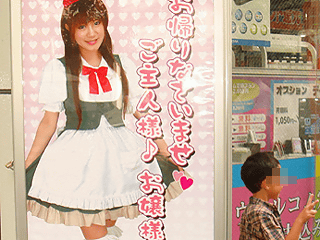 メイドさんの等身大と思われるPOP。メイド喫茶めいどinじゃぱんの看板。ラオックスザ・コンピュータ館前に設置。 今までも様々な看板はあったが、観光客が一緒に撮影して話の種になる様なものは少すくなかった、これなら「俺、秋葉原のメイド喫茶行ってきたんだぜ」と自慢できることうけあい。なによりメイド喫茶ではメイドさんと一緒に撮影するのには様々な制約が多いが、この看板ならば2ショットだろうがほっぺにチューしようが羞恥心さえ無くせば何でもしほうだいだ。 缶ジュースを買ってくれば、ジュース代だけでメイドさんをメイド喫茶に入ることなく思う存分見ることもできる夢のスポットなのだ(笑)。 めいどinじゃぱん (k) PR