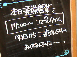 ・・・僕は休みじゃありません…、それがどうしたと言われたらそれまでですが、誰かに言いたかっただけです。 メイド喫茶カフェメイリッシュ(Cafe Mai:lish) □関連記事 (k)