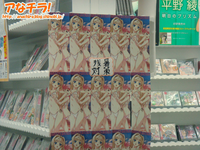 女の子の水着ポスターが「残暑対策」というPOP。掲示しているのは「とらのあな秋葉原本店」。 えーっと、何故?水着の女の子(To Heart 2の久寿川 ささら)ポスターが残暑対策なんですか?もしかして爽やかなエロ絵を見て、目から涼めというのでしょうか?でも僕は涼しくなると言うより、モヤモヤして熱くなるような気がします。 そうかっ。「心頭滅却すれば火もまた涼し」、エロで頭をいっぱいにして他のことを何も考えない様にすれば、世間から冷たい目で見られて涼しくなるぞってことか!・・・だめじゃん。 とらのあなの担当さん答えを教えてください! とらのあな □関連記事 (k) PR