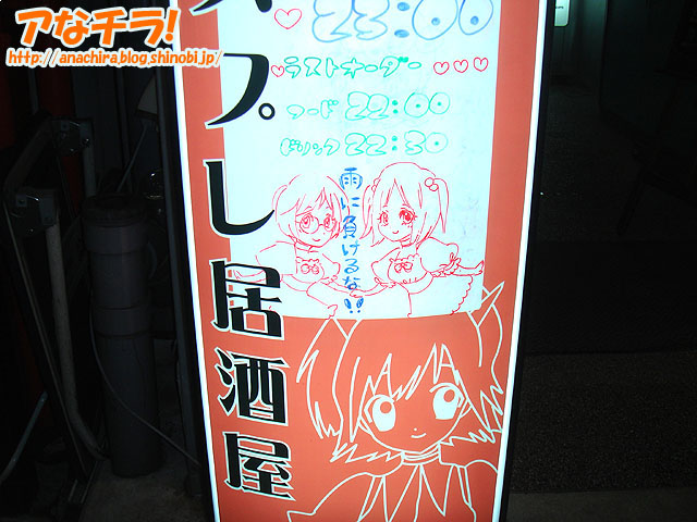 「雨に負けるな!!」という小悪魔の宴「Little BSD」の看板です。この看板を見かけた4月3日は朝から雨が降っていたのですが、この可愛い女の子2人のイラストを見たら少し心が爽やかになりました。 アキバ系コスプレ居酒屋 小悪魔の宴 Little BSD □関連記事 (k)
