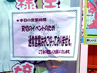 PS2用ゲーム「悪代官2-妄想伝-」の貸切イベントで3月3日(土)はアミューズメントカフェ「めいど in じゃぱん」がお休み。 「悪代官2-妄想伝-」はプレイヤーが悪代官「羽流内匠頭助平(わるだくみのかみ・すけべえ)」になって正義の味方「宮本武蔵」などを倒すゲーム。悪徳商人「弁天堂菊蔵」から得た賄賂金で罠や武器を購入して屋敷内に設置することで、様々な正義の味方対策が行える。また、正義の味方との対決シーンでは「であえ!であえ!」のかけ声で呼び出した切られ役を先に闘わせた後、とどめを悪代官が刺すという流れになっているのも特徴。 今回のイベントは店頭に悪代官2をイメージしたポスターや千両箱が飾られていた。店内の様子などは不明。 メイドさん達はイベントのコンパニオンで「巫女」の衣装を着ていたそうです(公式blog)が、どうせなら「くのいち」や「町人の娘」などの衣装になって欲しかった気もする。 悪代官2-妄想伝- □関連記事 |