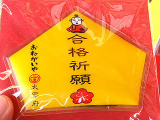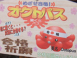太宰府天満宮の参道で見かけた「合格祈願グッズ」でユニークなのを紹介。 実用的?な合格用品「合格カイロ」「合格五角けしごむ」「合格メモ帳」。 なごみ系のぬいぐるみ「オクトパス(置くとパス)」。 値段もリーズナブルなのでお土産としても良さそうでした。 (k)
