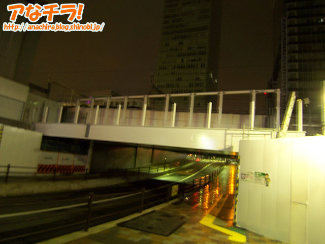 秋葉原に新たな歩道橋が密かに設置されたことをご存知だろうか。 12月9日(土)深夜の工事で設置されたのだが、完成後もまるでカモフラージュでもされたかのように風景に変化がないため、多くの人はまだ気が付いていないようだ。 場所は、神田相生町のガード下部分(場所@GoogleMap)。中央通りから昭和通りへとつなぐための道路の中間地点にあり、京浜東北線と新幹線のレール下を潜るようなかたちで通る場所。この道は、秋葉原UDXや秋葉原ダイビル付近からヨドバシカメラへ移動する道としても最近よく使われ、交通量も多い。 アイボリーで塗装された細めの歩道橋は、東北・上越新幹線のレールの隣に同じ高さで並行設置されていることもあり、風景にこれまでと変化がなく、ガード下をくぐる歩行者もほとんどが気が付いていない。真下からのぞき込むと、まるで細いレールが一本追加されたように新たな架橋ができているのだが、それでも1日前の状態との違いを発見できる人はまずいないだろう。 もっとも、歩道橋といっても一般の人が使うようになるものなのかはまだわからない。ちょうど、現在工事中の富士ソフトABC本社とJR秋葉原駅中央口のロータリーとをつなぐかたちになっており、駅とビル間の近道用としてつくられたもののようだ。おそらく、駅を利用する通勤者用に作られた富士ソフトABCの私道といったところだろう。 一般の人に関係ない歩道橋の話なんか書いてどうすんだよ?と聞かれれば、「秋葉原マニアを自称する人間でもこんな事は知らないだろ!」と自慢したかっただけでございます(笑)。 (f)