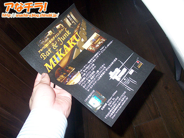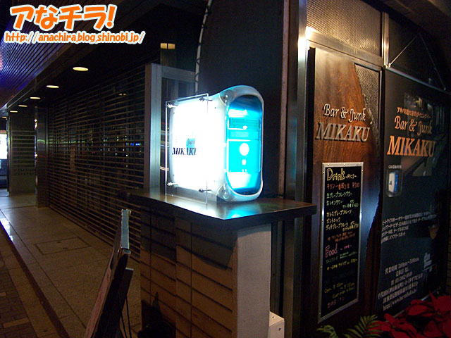 昭和通り側にPowerMac G3のケースを看板にした“大人のアキバ系バー”が誕生している。名前は「Bar & Junk MIKAKU」。バーといっても、看板と名前から想像できるように、メイドがいる萌え系ではなく、どちらかというと世代的には萌え系一つ手前にあたるPC・ゲーム系のやや大人の層を狙ったお店。 これが調べてみるとなかなか濃い。「萌え系飲食店なんて…」とお嘆きの30代以上の大人系アキバ世代には要注目のお店だ。 定休日なしで毎日夕方5時から朝5時まで営業、電源コンセントと無線LANは使い放題、メニューには秋葉原名物の食べ物が豊富、マスターもシェフも秋葉原が地元で隅々までよく知る個性派揃い、店内は大人の落ち着いた内装…などなど、内容は質を重視した筋金入りの“アキバ系”だ。店内には昔のファミコンや大型TVも設置してある。 そもそも、店先に設置してある看板がユニークだ。看板として使われているPowerMac G3のケースは、夜になると照明が入ってぼんやりと光る仕組みになっており、特に深夜帯には異彩を放つ。このお店は昭和通りといっても、秋葉原側ではなく浅草橋側にあるため、夜になると周囲は営業店舗がなく、PowerMac G3の青白い光が一層目立つ。マスターによると、このケースはジャンク屋で2,500円で購入したものを改造したのだという。 メニューも面白い。バーとしての酒類や食べ物系はひと揃いあるが、それ以外に「チチブデンキのおでん缶」「荒木商店の卵焼き」などの秋葉原名物が入っている。おでん缶はあまりに有名なので省略するとして、荒木商店というのは秋葉原で昔から営業している卵屋さんで、裏メニューの厚焼き卵は知る人ぞ知る美味名物。スタッフが地元で長いということもあり、荒木商店ともつきあいがあるそうで、同店の卵焼きをメニューに加えているほか、夜には荒木商店の前を借りてバーを宣伝する大きな幕も出している。 秋葉原に詳しいスタッフも魅力だ。マスターもシェフも地元で長く、街の歴史や古いお店の主人達のこともよく知っている。秋葉原のうんちくを語りたい人にもお勧めだ。イベントやオフ会での使用もOKとのこと。 店内はウッドを中心とした落ち着いた大人系の内装で、黄色い声が飛び交う萌え系店舗とは違い、ゆったりした雰囲気。特に毎日朝5時までやっているというのは“大人系”としては嬉しいところ。夜遊びが過ぎたときにここで始発電車を待つのもよし、休日前夜の遊び場所として使うもよし。ちなみに、中心地からややはずれたところにあるというところから「アキバの隠れ家的ダイニングバー」というキャッチコピーが使われているが、電波が通らず店内ではケータイの類が一切使えないというあたりも“隠れ家”としてピッタリかも知れない(笑)。 気になる人は、同店のWebに詳しい情報が出ているのでチェックしてみるといいだろう。スタッフ達によるブログも公開されているが、シェフだけが初日に書いたまま放置しているのはご愛敬(笑)。 Bar & Junk MIKAKU (f)