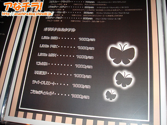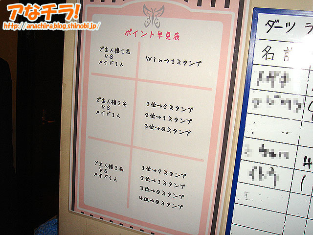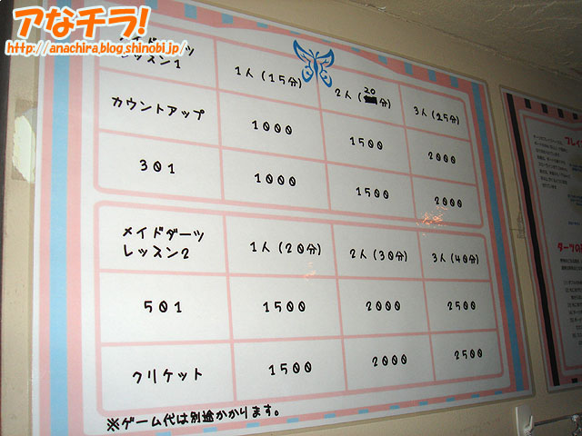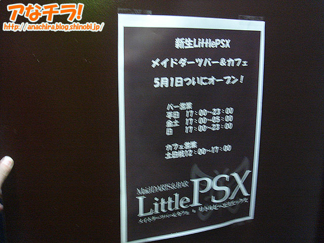 今年3月に閉店した「Little PSX」が5月1日(火)にニューアルオープン。今回もメイドさんと一緒に遊ぶコンセプトの店舗で、従来の「Wii」や「PS3」といったテレビゲームからダーツゲームで遊ぶようになっている。場所は以前と同じイサミヤ第3ビル3F。 店内は従来のテーブル席に加え、新たにバーカウンター席が用意されていた。また入り口すぐにデジタル式のダーツゲーム機が2台設置。ダーツは手軽に遊ぶことも可能だが、ゲーム内容によっては戦略、知略を要求される奥深いゲーム。ダーツバー自体は新宿や池袋などで数年前から流行っている。 ダーツゲームは有料で、個人やグループで楽しむほか、メイドさんとレッスンしたり、一緒にゲームを楽しむことも可能となっている。店長さんによると「ダーツの上手いメイドさんが初心者の方にも優しく教えますし、ダーツの初心者のメイドさんには(お客様から)教えてやって下さい」とのこと。 ドリンクメニューはビールやカクテルなどアルコール類が主体になっており、フード類はパスタやピザなどが用意されている。独自メニューとしてはオリジナルカクテルとして「Little BSD」「てんぱね」など系列店舗名にちなんだものがある。 店長さんによるとダーツゲームのイベントは現在予定されていないが、「今後は大会などを実施していきたい」とのこと。メイド喫茶自体のイベントとしては2日に「初音りおイベント」、5日に「sorachoco(そらちょこ)の稲村優奈さん・花村怜美さんのお二人による一日メイドさんイベント」が予定されている。 5月1日の19時頃に訪れたところ、客席は満席に近く、ダーツゲームも予約待ちの状態だった。 ちなみに、同店の新しいメイド服は、メイドさん自身も「ちょっと短いかな?」というミニスカート。ダーツゲーム機の的からダーツを抜く時にメイドさんが背伸びをしたりするのを見るとちょっとドキっとしてしまう。 Little PSX (k)