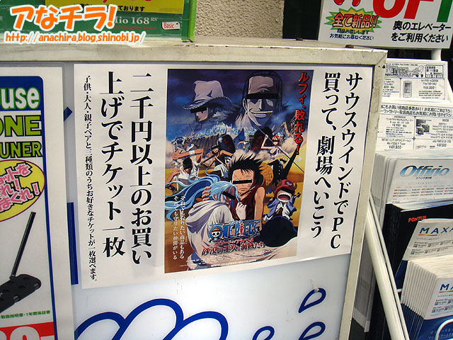 期間中サウスウインドで2,000円以上の買い物をすると劇場版アニメのチケットが一枚もらえるそうです。大人の当日入場券は1,800円程度だから、劇場に行く予定のある人にはかなりお買い得になるはず。 作品はPOPを見る限り少年ジャンプで人気の高い作品にみえますね… (k) PR