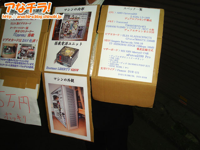 青年の年齢は20代半ばくらいで、格好はスーツ姿。話を聞いたところ「生活のために売りたい」「PCは組んだばかりで新品同様」「価格の15万円は割安」だという。かなり切実な問題によってPCを手放す事にしたのだろう。