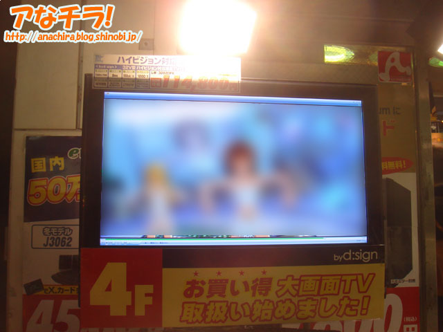 秋葉原のパーツショップやホビーショップは消費者の感心を引くために新作ゲームやDVDの画像をデモとして店頭のモニターで流している。流している作品は最新のゲームやDVDなどが主流だがWebで話題になっているアングラなものもある、どれも見ていて楽しい。これらは正統な商品を宣伝目的に使っていたので問題はないと考えている。