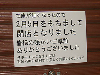 PCパーツショップ「ワンネス」が2月5日(月)に正式閉店した。同店は1月31日に閉店する予定だったが「まだ在庫がある」という理由で営業していた。最後まで商魂たくましいところが老舗のPCパーツ系ショップらしい。 一度閉店予定を出していたのに営業を延長していたので、今回は店頭POPに「在庫が無くなったので閉店」「商品が無くなってきた為本日で閉店(今度こそ本当に)」「ザ・閉店」「今日が最後」「本日閉店」といった過剰なまでに閉店のお知らせをだしていた。 ちなみに、閉店後に「本日で閉店の為、このケースご自由にお持ち下さい」と書かれたジャンクケースがシャッター前に置かれていたのには哀愁が漂っていた。 □関連記事 (k) PR